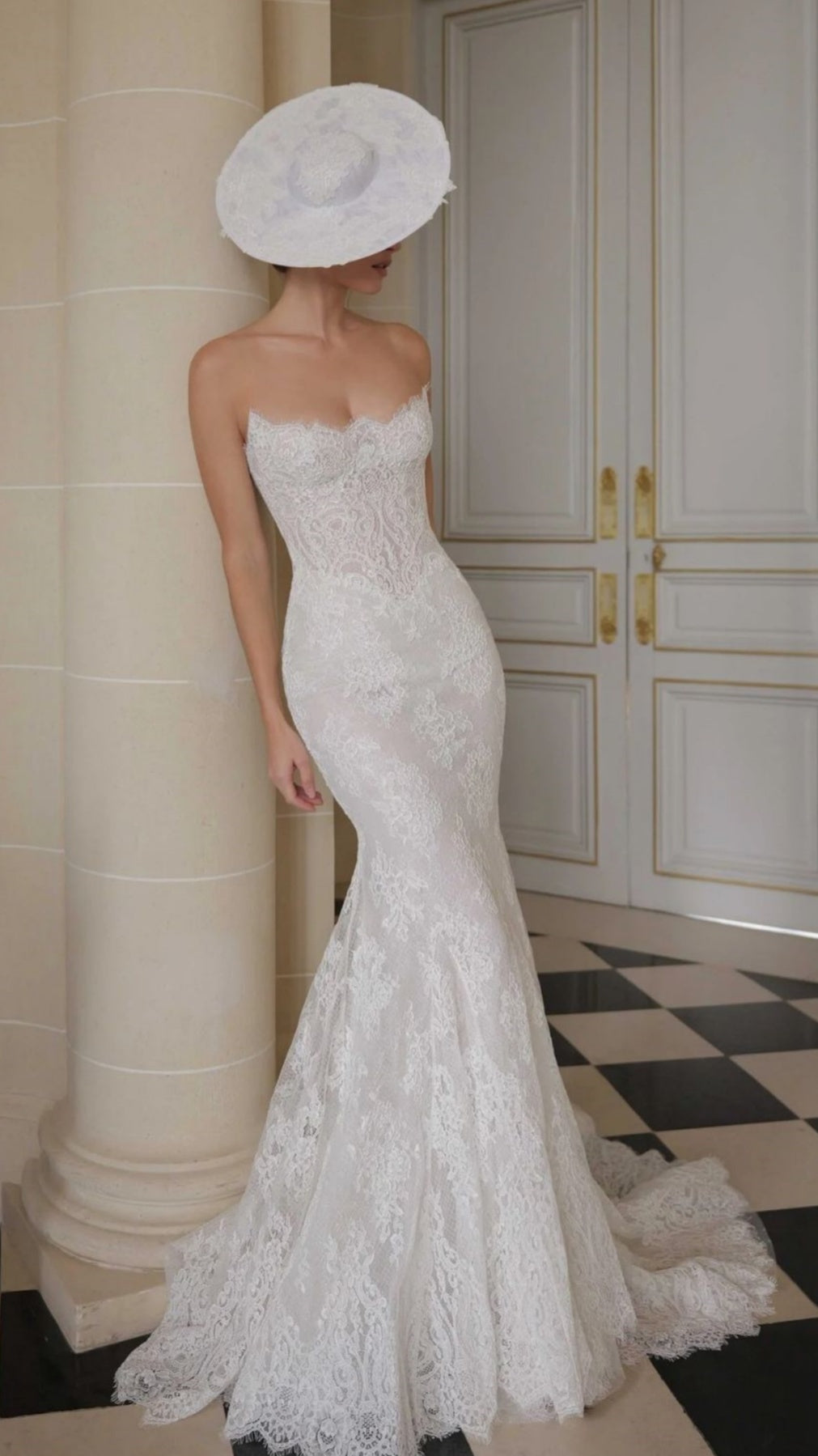 Ivory Strapless Lace Mermaid Wedding Dresses Elegant Beach Wedding HZ0307