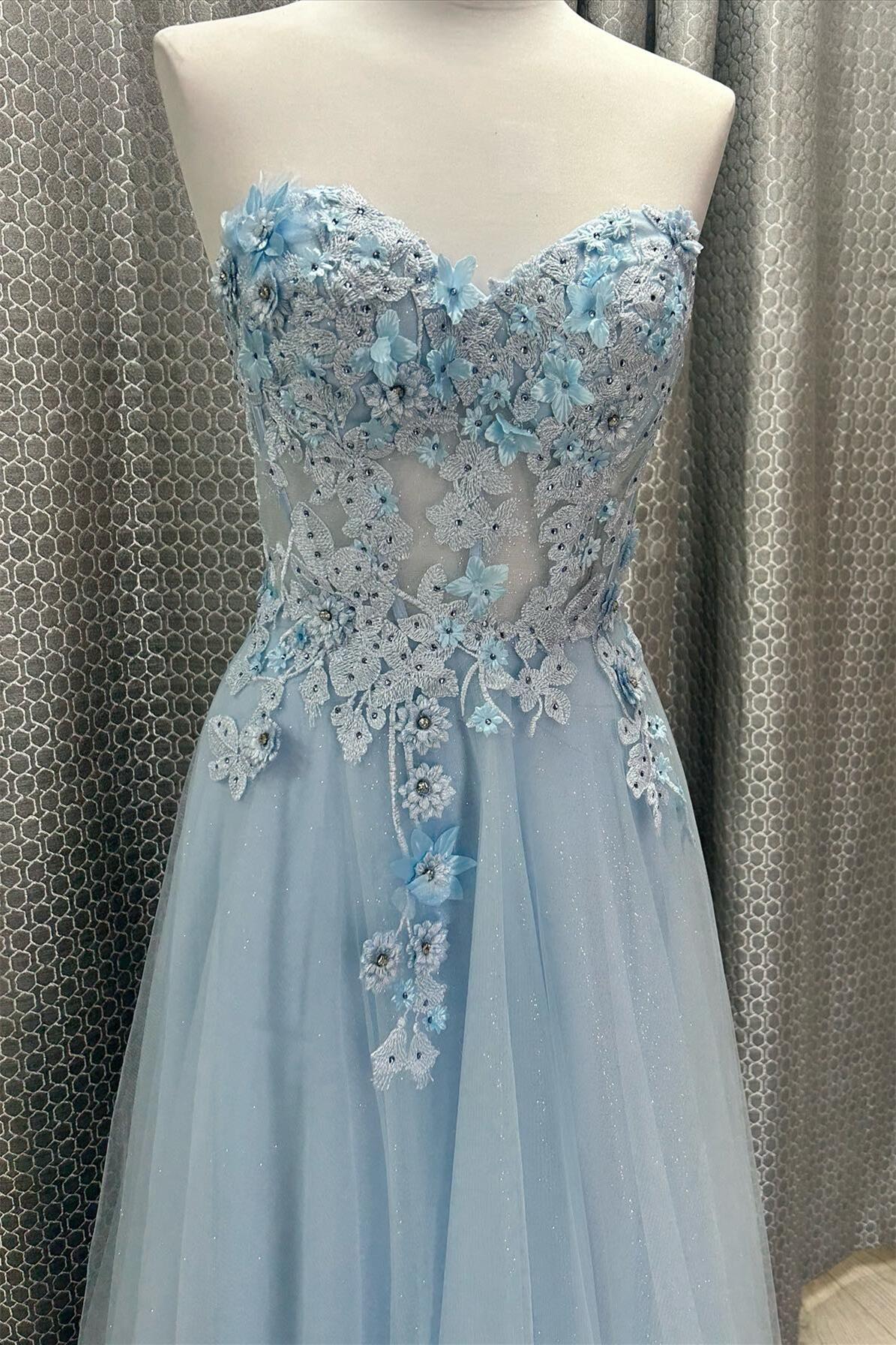 Sweetheart Light Blue Appliques Long Prom HZ0307